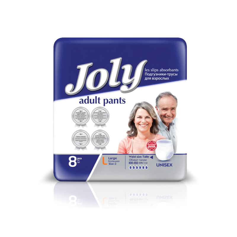 Joly est une marque de couches pour adultes qui fournit des couches unisex, adaptées aux personnes âgées et protègent contre l’incontinence. Nos couches existent également en format culotte et en différentes tailles.